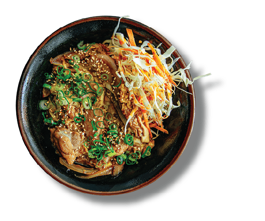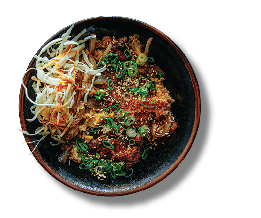 Porc pané enrobé de notre panko maison cuit en sauce, oignons et œuf battu