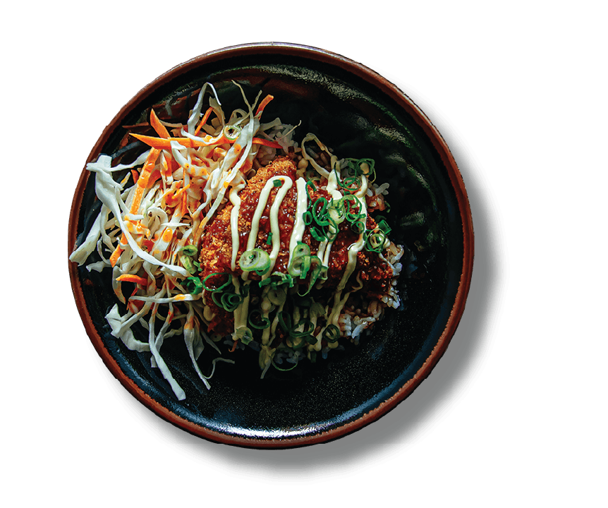 Porc pané avec notre mélange de Panko maison, servi avec sauce Tonkatsu et Mayo